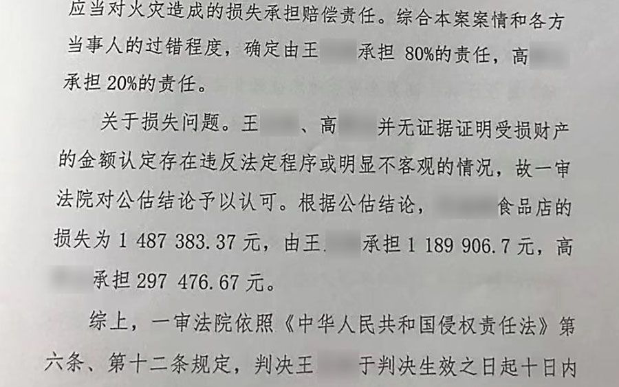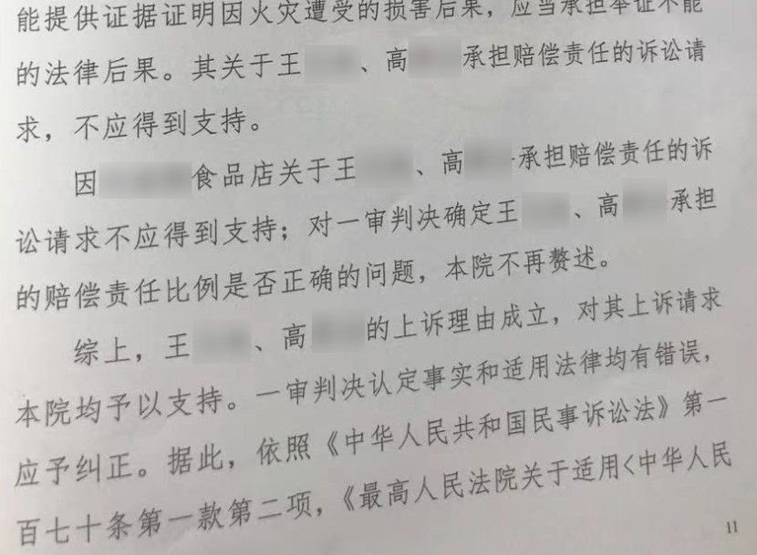 最终,二审法院采纳了我们团队对该评估报告的专业、深度质疑,认为该评估报告不能证明食品店的真实损失情况,并鉴于此无需再进一步讨论王某、高某是否承担责任的必要,改判王某和高某无需承担赔偿责任。