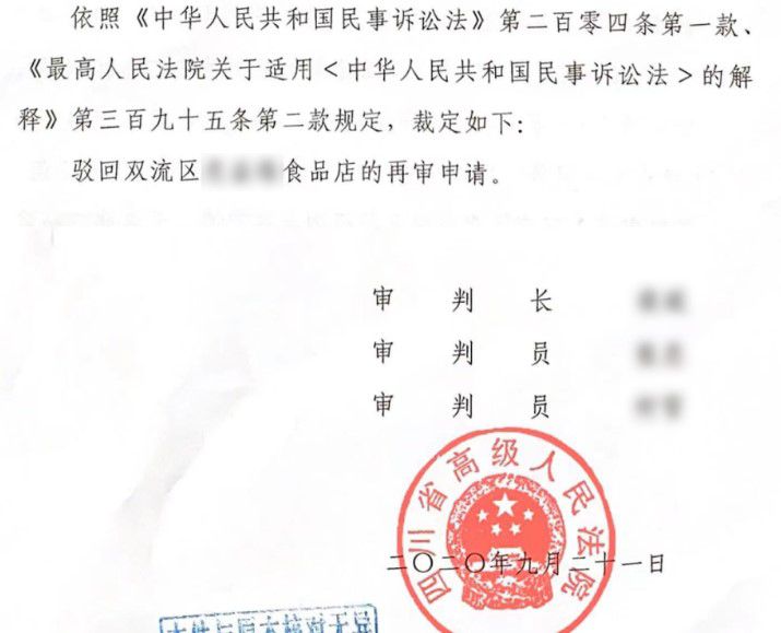 食品店不服二审判决,又向省高院申请再审,再次被驳回。